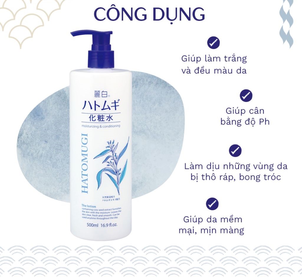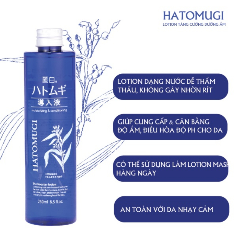- Nước hoa hồng Hatomugi chứa thành phần hoạt chất Dipotassium Glycyrrhizinate và Allantoin giúp cải thiện làn da khô, thô ráp và ngứa.